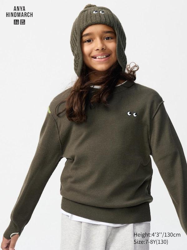 Uniqlo X Anya hindmarch kids - 100% Merino Crew Neck Jumper - olive
